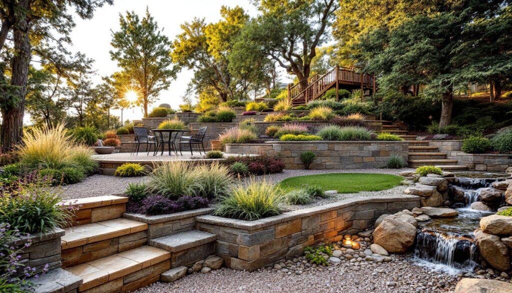 A sloped backyard can feel like a landscaping curse at first glance. Mowing on an angle is awkward, flat play space is scarce, and erosion eats away at topsoil every spring. But here’s the truth: a hillside is one of the most versatile canvases a homeowner can work with. With the right approach, that slope becomes an opportunity for terraced gardens, natural stone features, and dynamic outdoor spaces that flat yards can’t replicate. The projects below range from weekend DIY builds to larger undertakings that may require a skid steer and a permit, but all of them turn grade into an asset. Key Takeaways Backyard hill ideas transform sloped terrain into multi-functional outdoor spaces through terracing, retaining walls, and natural stone features that flat yards cannot replicate. Terraced garden beds, natural stone retaining walls, and hillside staircases require proper drainage planning, soil stabilization, and adherence to local building codes before construction begins. Installing water features like cascading streams or waterfalls on slopes creates dynamic focal points while managing erosion and runoff naturally. Prioritize safety by checking slope grades (3:1 or steeper require structural support), obtaining necessary permits, and consulting local building departments for any significant grading or construction work. Creative